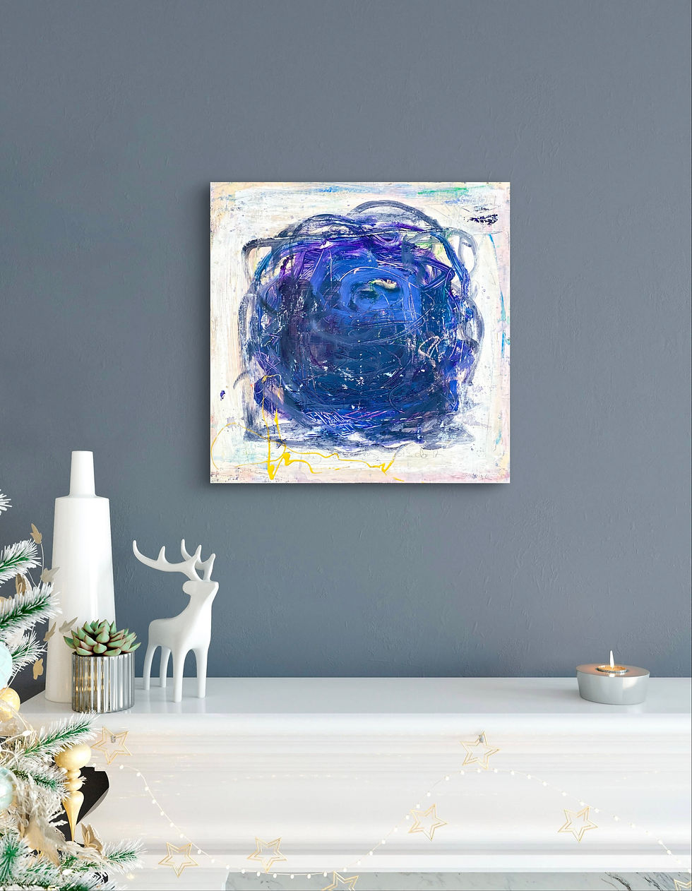 Flower Blue I 40 cm x 40 cm I Hardwood Panel